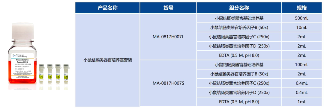 小鼠結腸類器官培養基套裝組分表