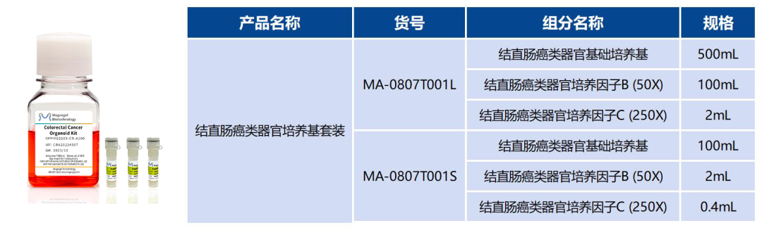 人結腸癌類器官培養基套裝組分表