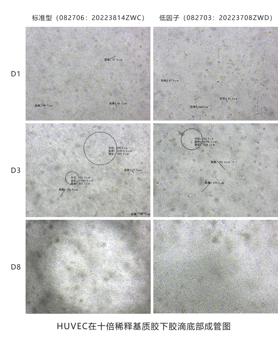 本周?;镆訦UVEC細胞為例,選?。?0224503XHZ、20224505XWZ兩批次進行了血管生成方面評定,并與大家分享一些模基生物對基質(zhì)膠成管方面的一些評測,希望對大家選擇基質(zhì)膠有所幫助。